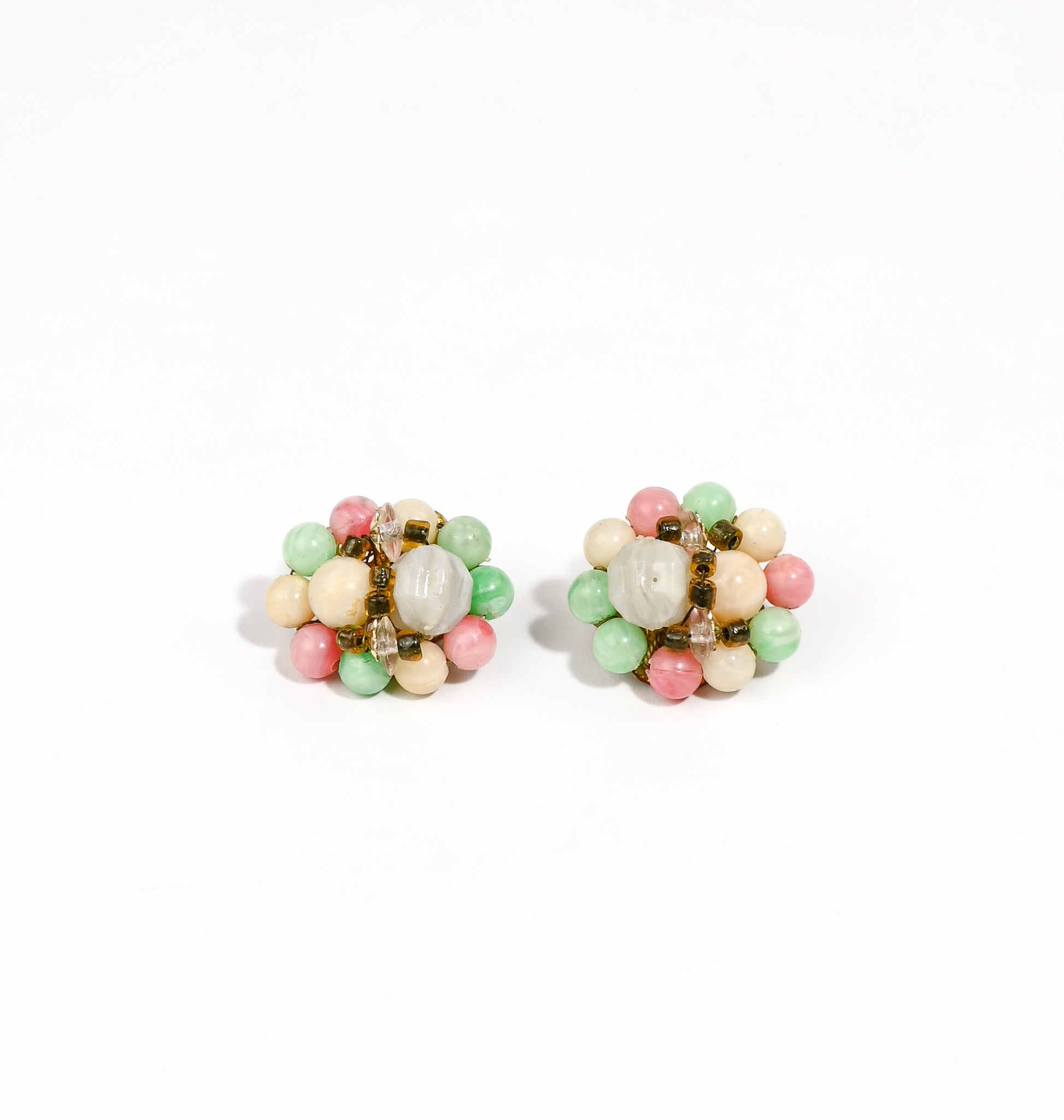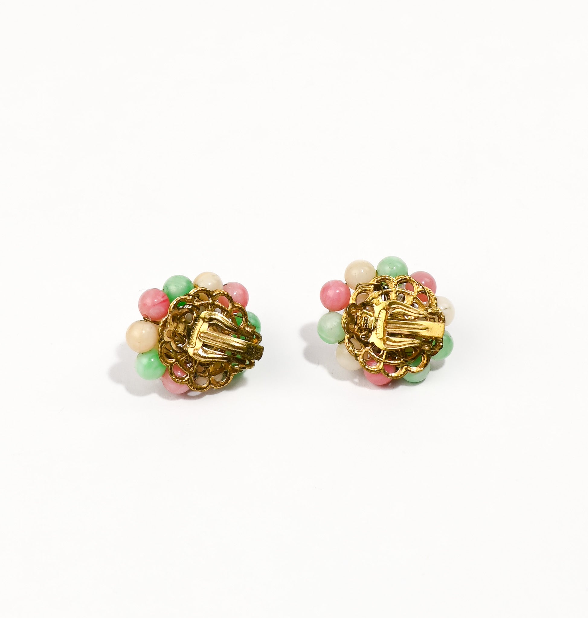 Vintage Gold Tone & Multicolor Bead Cluster Clip on Earrings