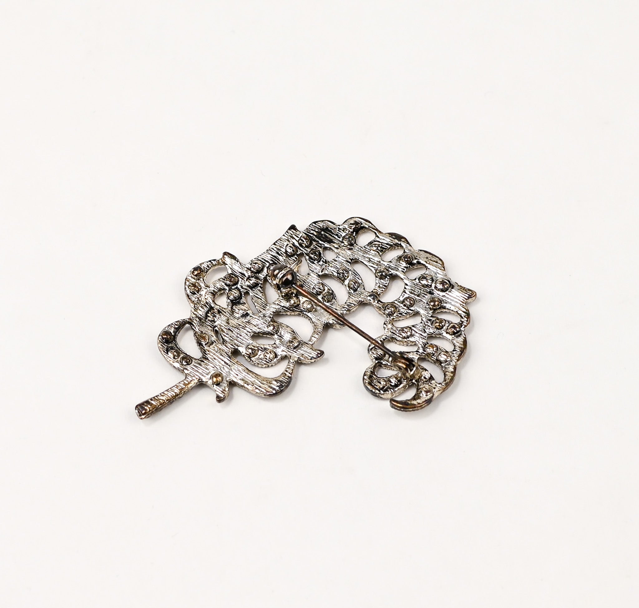 Vintage Silver Tone Rhinestone Feather Plume Brooch