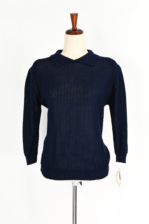 DEADSTOCK - Vintage 80s BRIGHT LIGHTS Dark Blue See-Through Polo Style Sweater - L