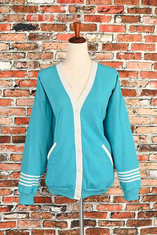 DEADSTOCK - Vintage 80s Turquoise G.W. Division of Graff Padded Shoulder Cardigan Sweater - XL