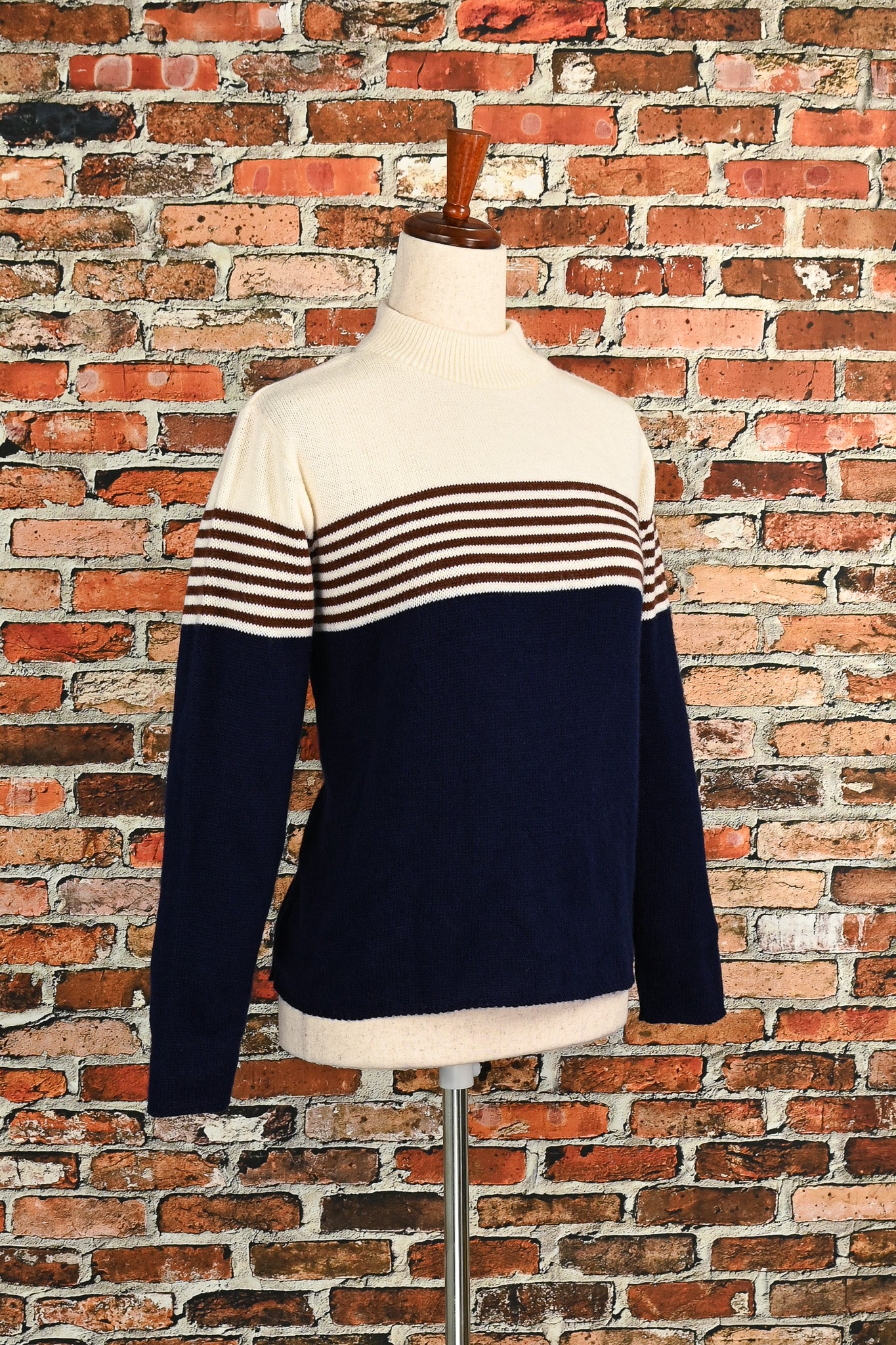 Women's Vintage Blue/White & Brown Striped WILLOW RIDGE Acrylic Pullover Sweater- Pullover sweaters, what's not to love?