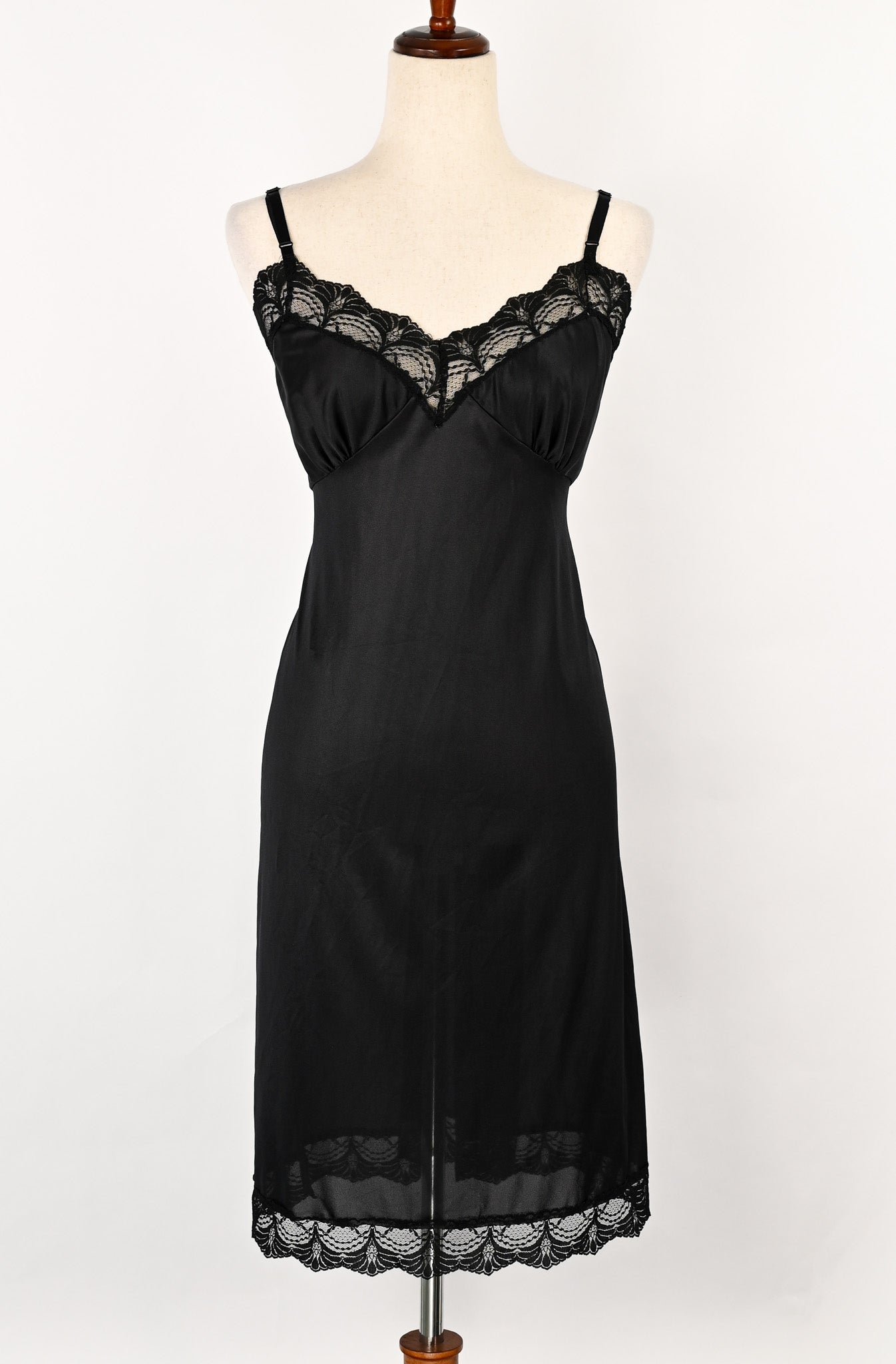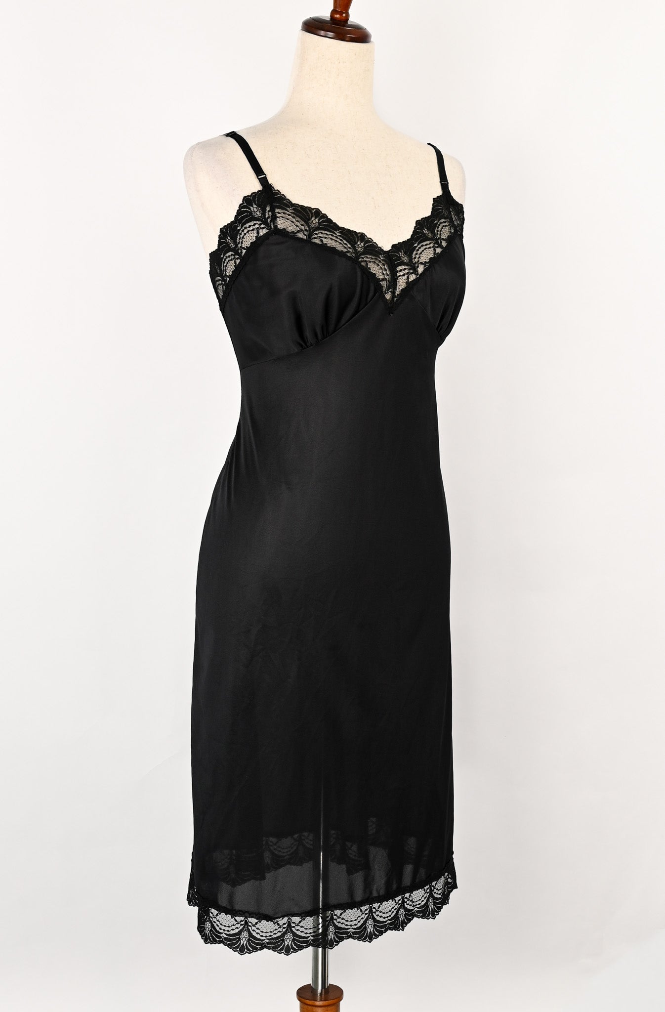 Vintage 50s/60s Black BEAU TRIX Nylon Nightgown Slip Dress - 42