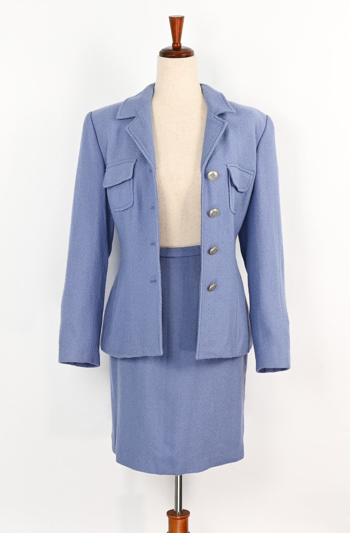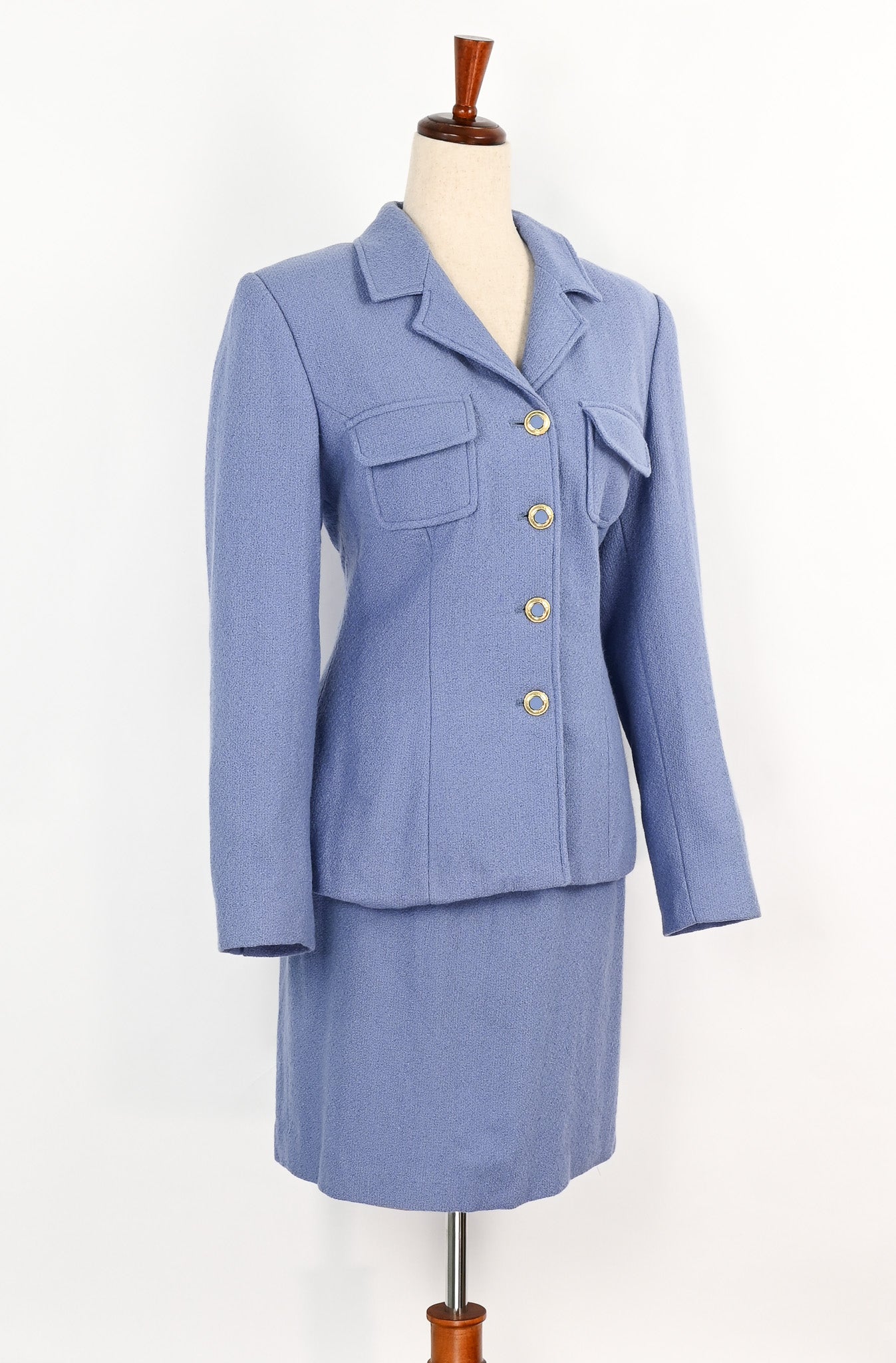 Vintage 80s/90s Periwinkle Wool GRUPPO AMERICANO Skirt Suit Set - Bring fashion to the work room in this beauty.