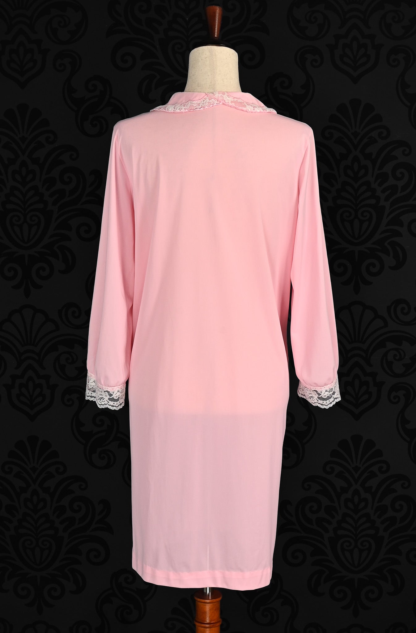 Vintage Pink GOSSARD ARTEMIS Long Sleeve Peignoir Robe - Truly a beautiful button up nightgown/peignoir and perfect for getting ready in the morning. This peignoir features lace detailing on the sleeve cuffs and collar, along with embroidered roses on the collar.