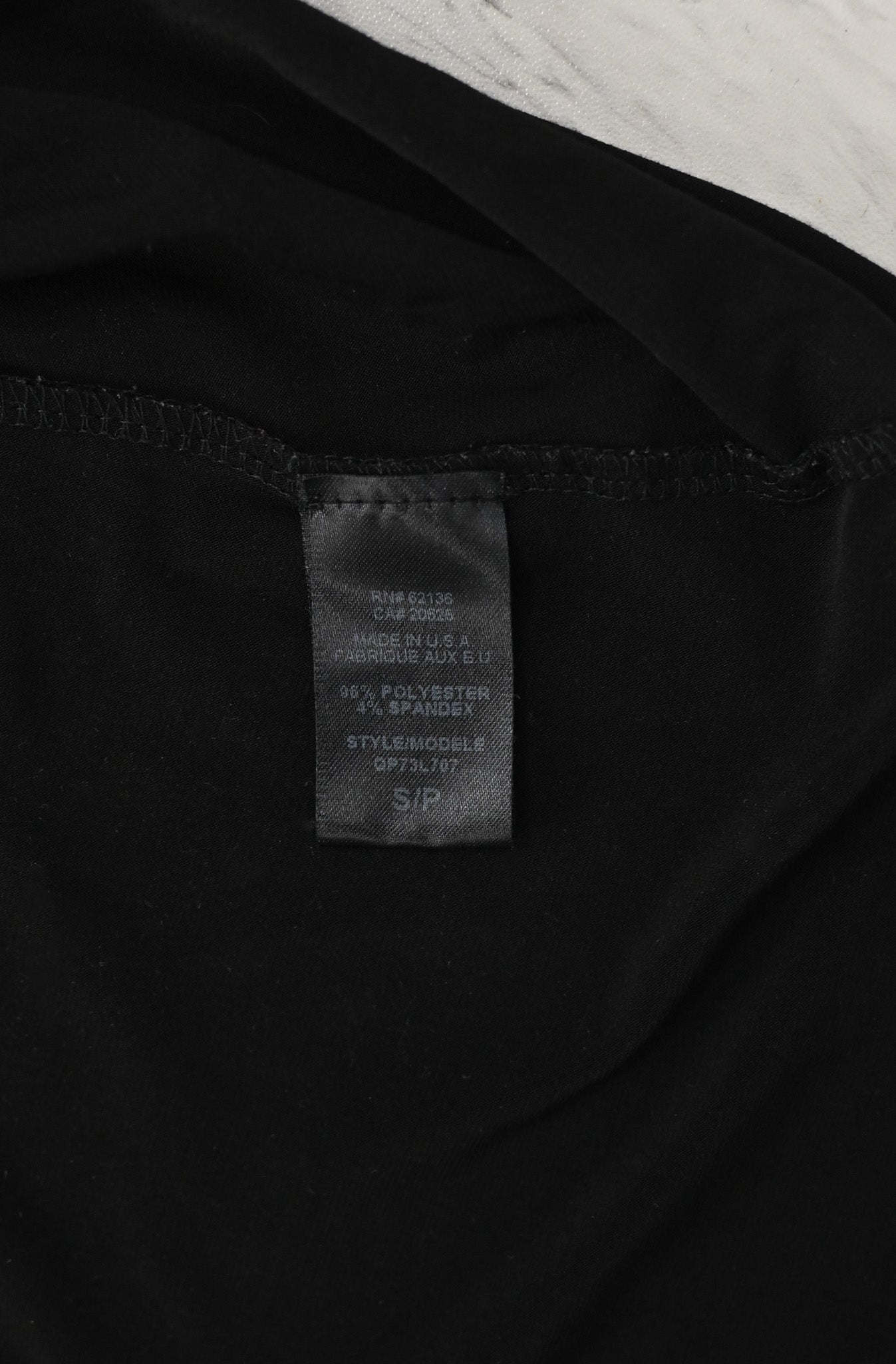 Material - 96% Polyester, 4% Spandex, Made in U.S.A.