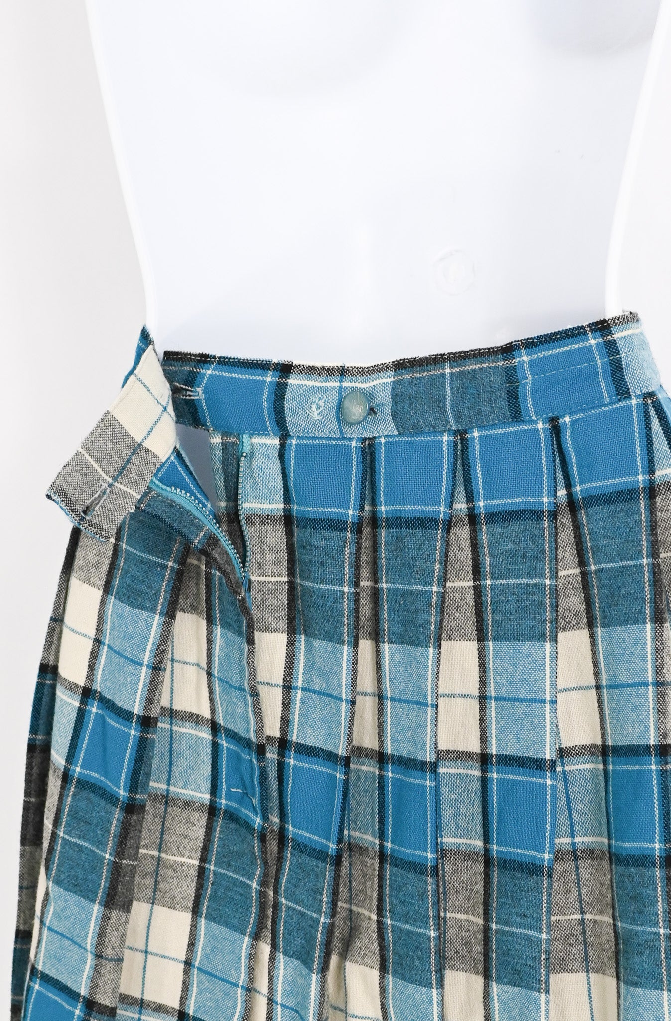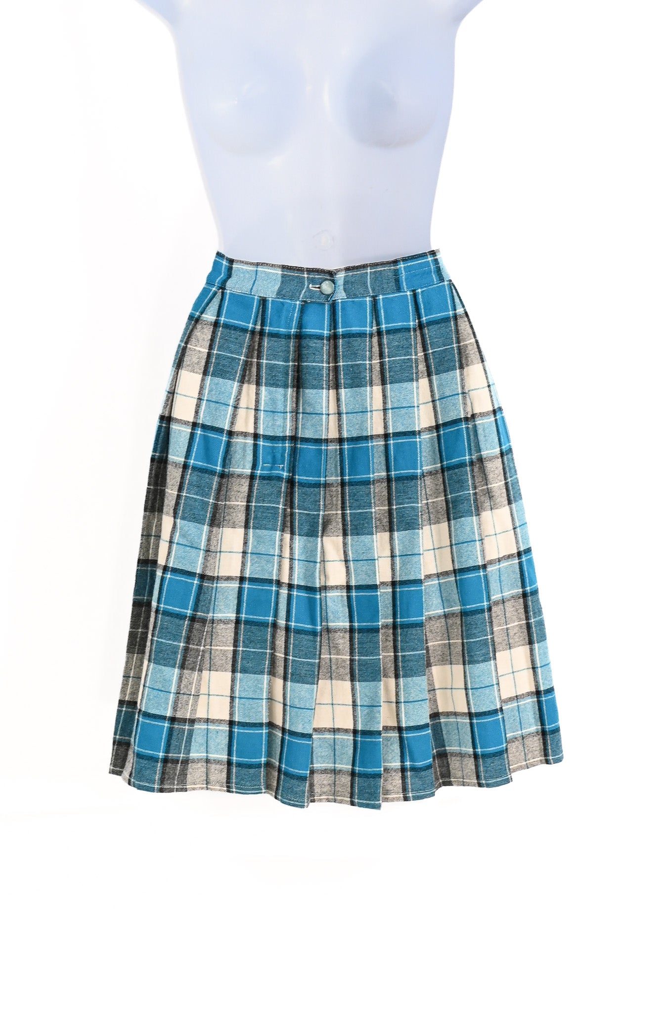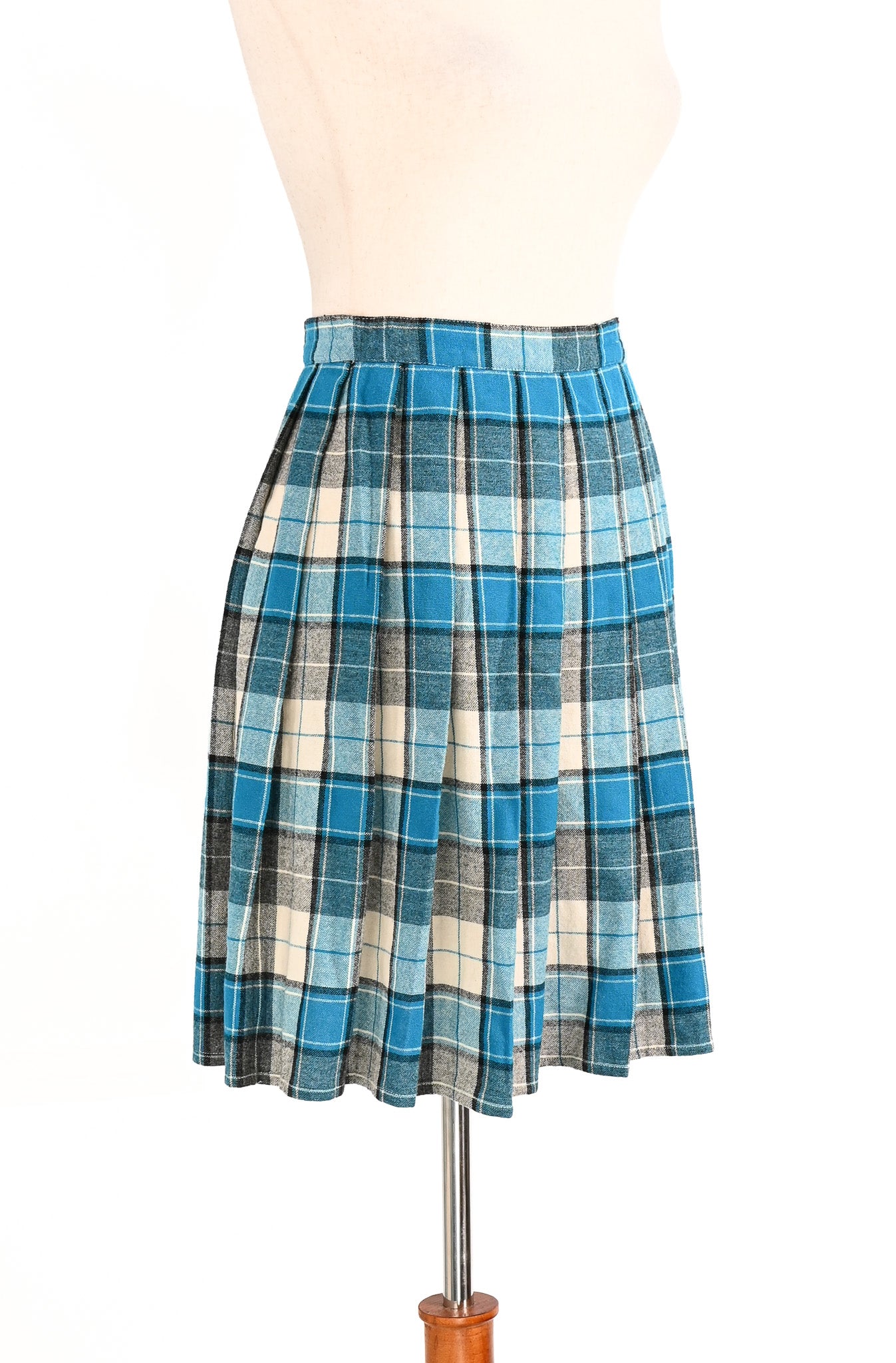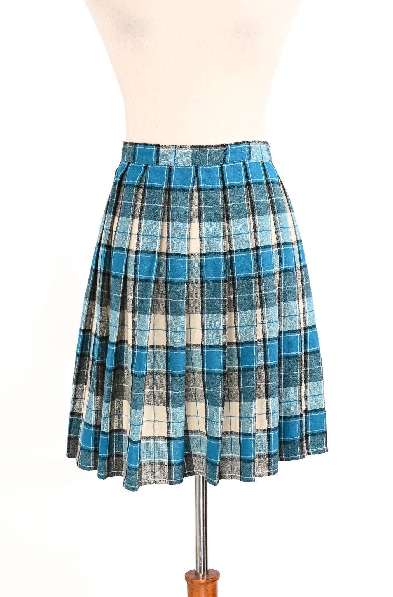 Vintage Blue & Grey Plaid Wool Pleated School Girl Skirt