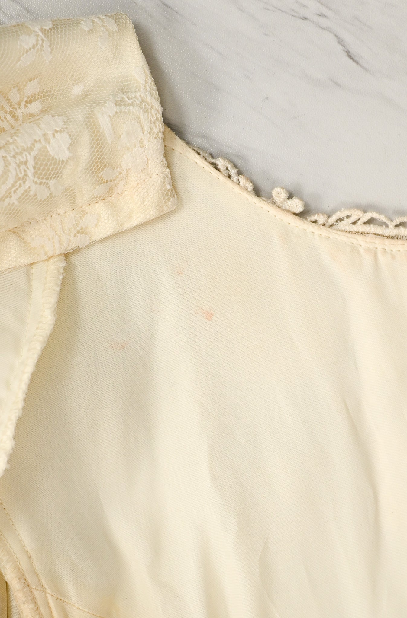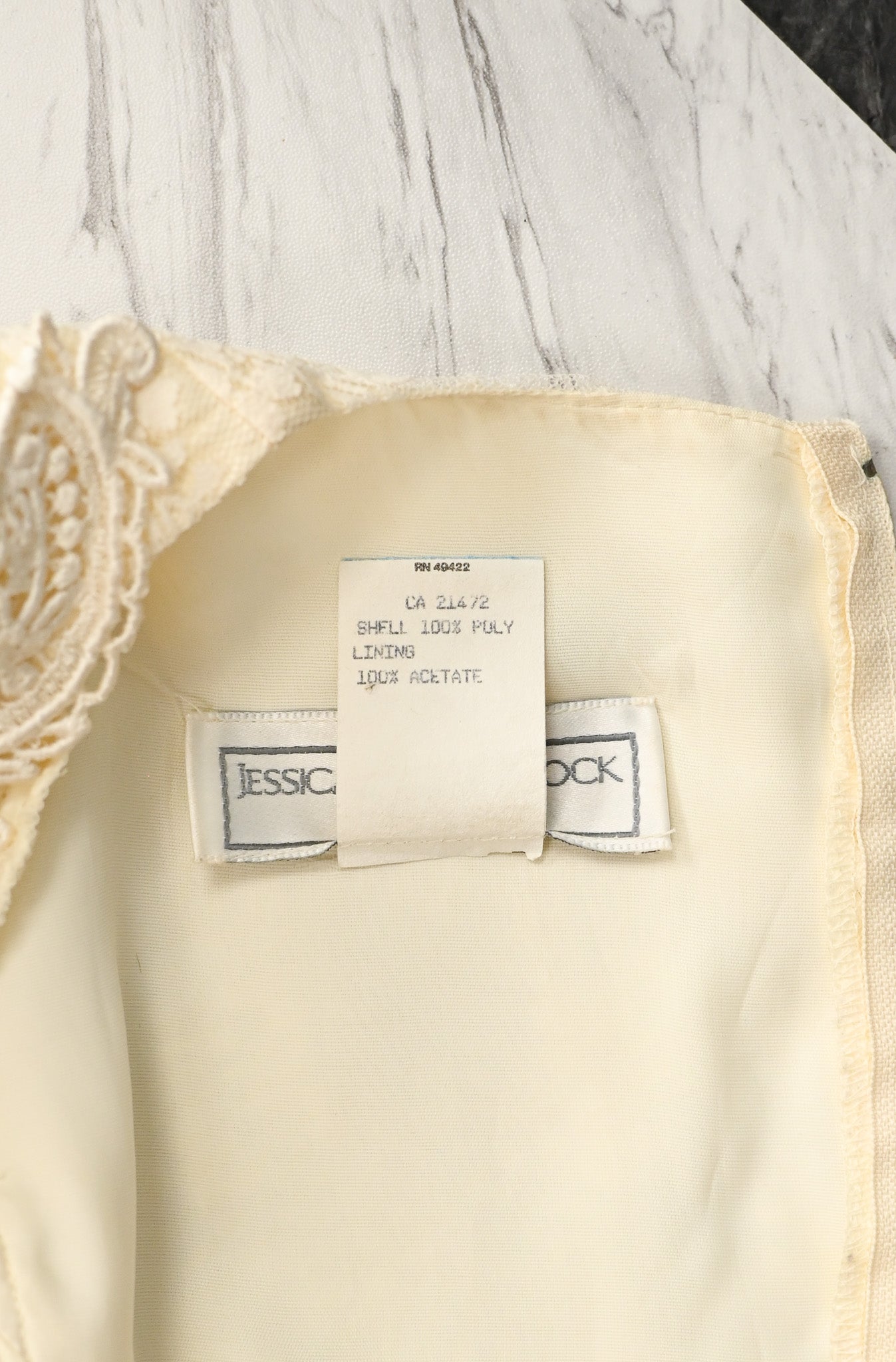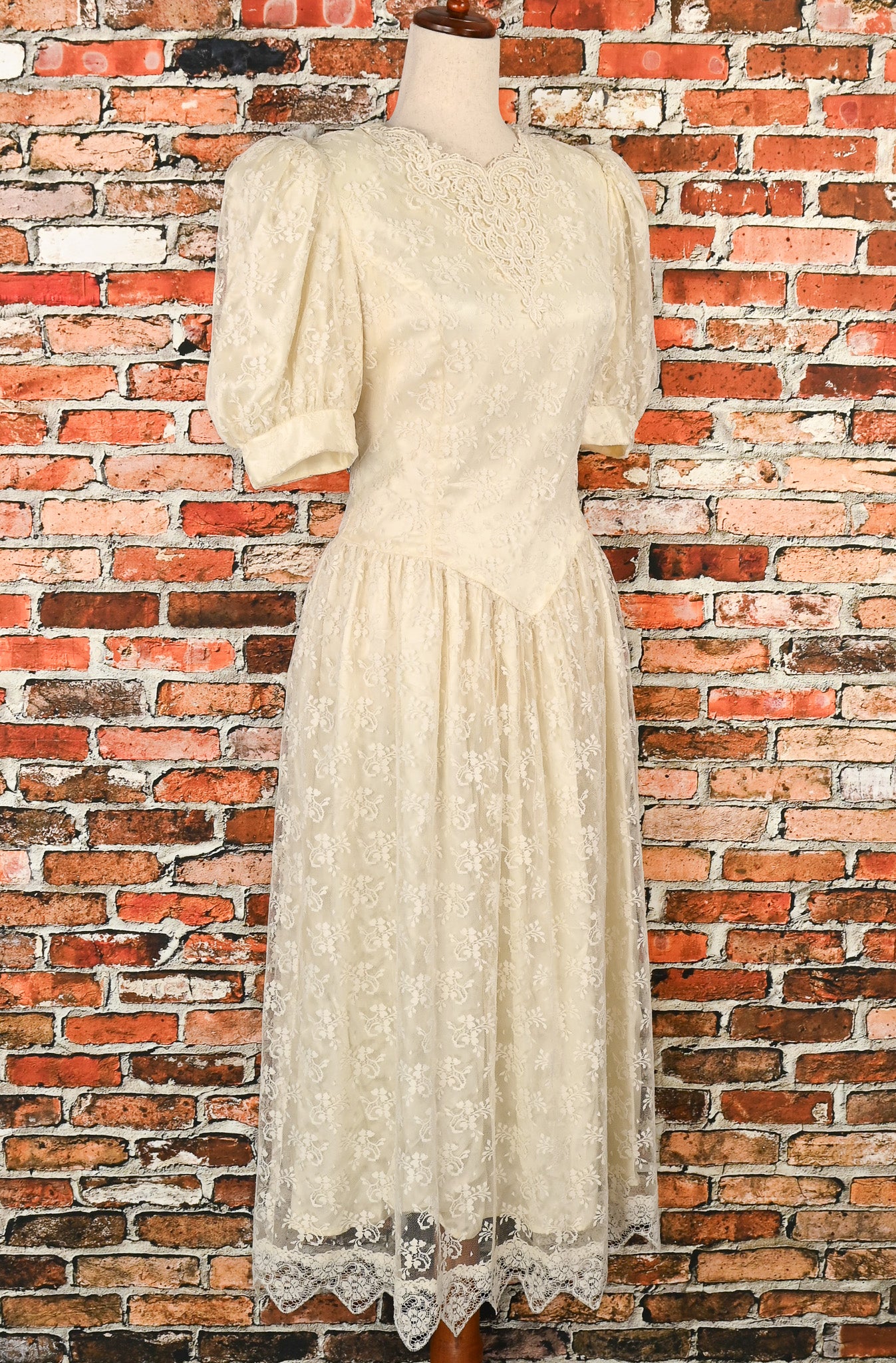 Vintage 90s Ivory Lace JESSICA MCCLINTOCK Gunne Sax Princess Cut Puff Sleeve Wedding Dress - The perfect princess cut gown. This ivory lace dress features a white lace overlay, puff sleeves, and an embroidery accent piece around the collar. Then the top of the dress and bottom are all sewn together by a princess style cut.