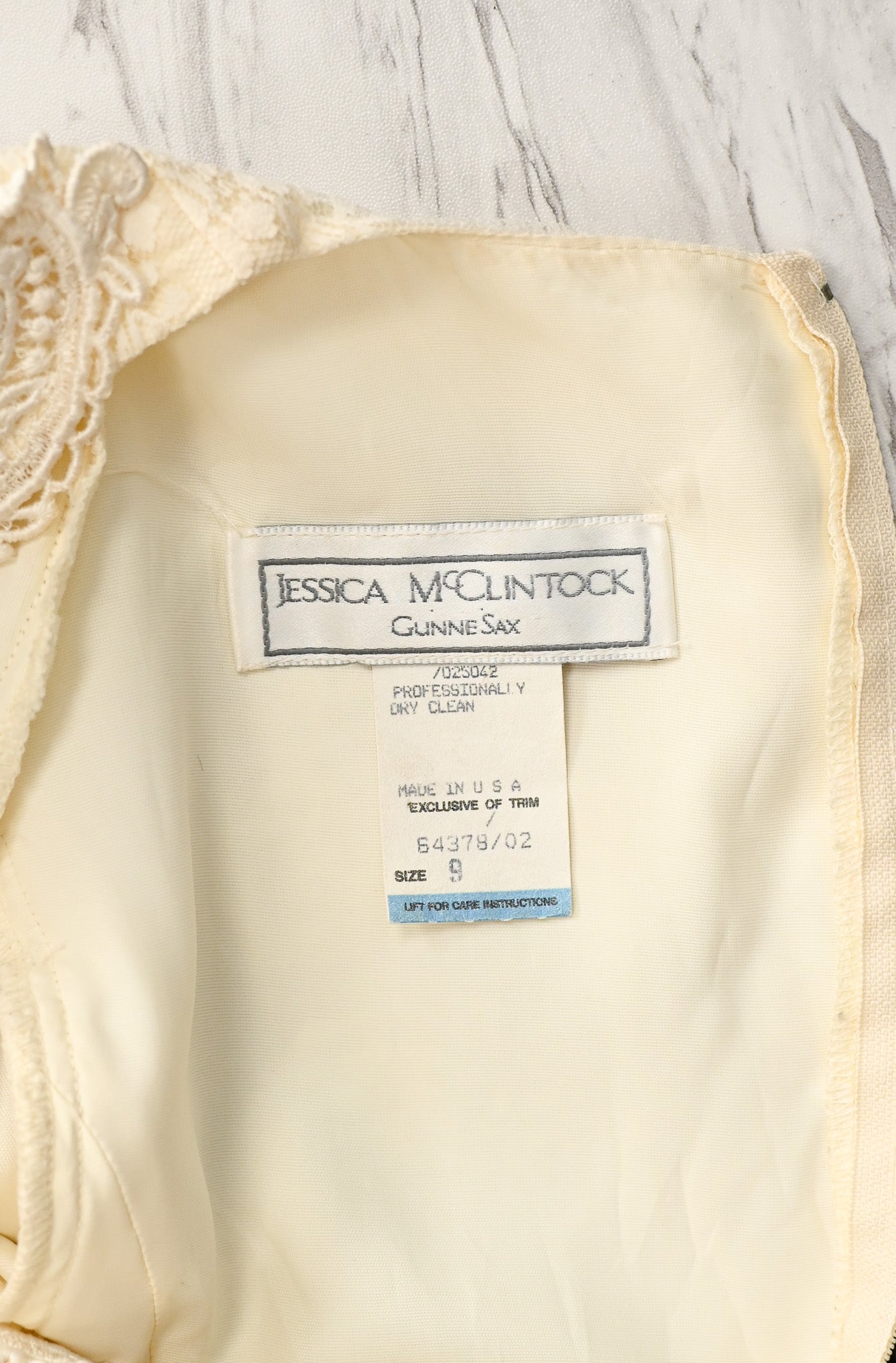 Vintage 90s Ivory Lace JESSICA MCCLINTOCK Gunne Sax Princess Cut Puff Sleeve Wedding Dress - 9