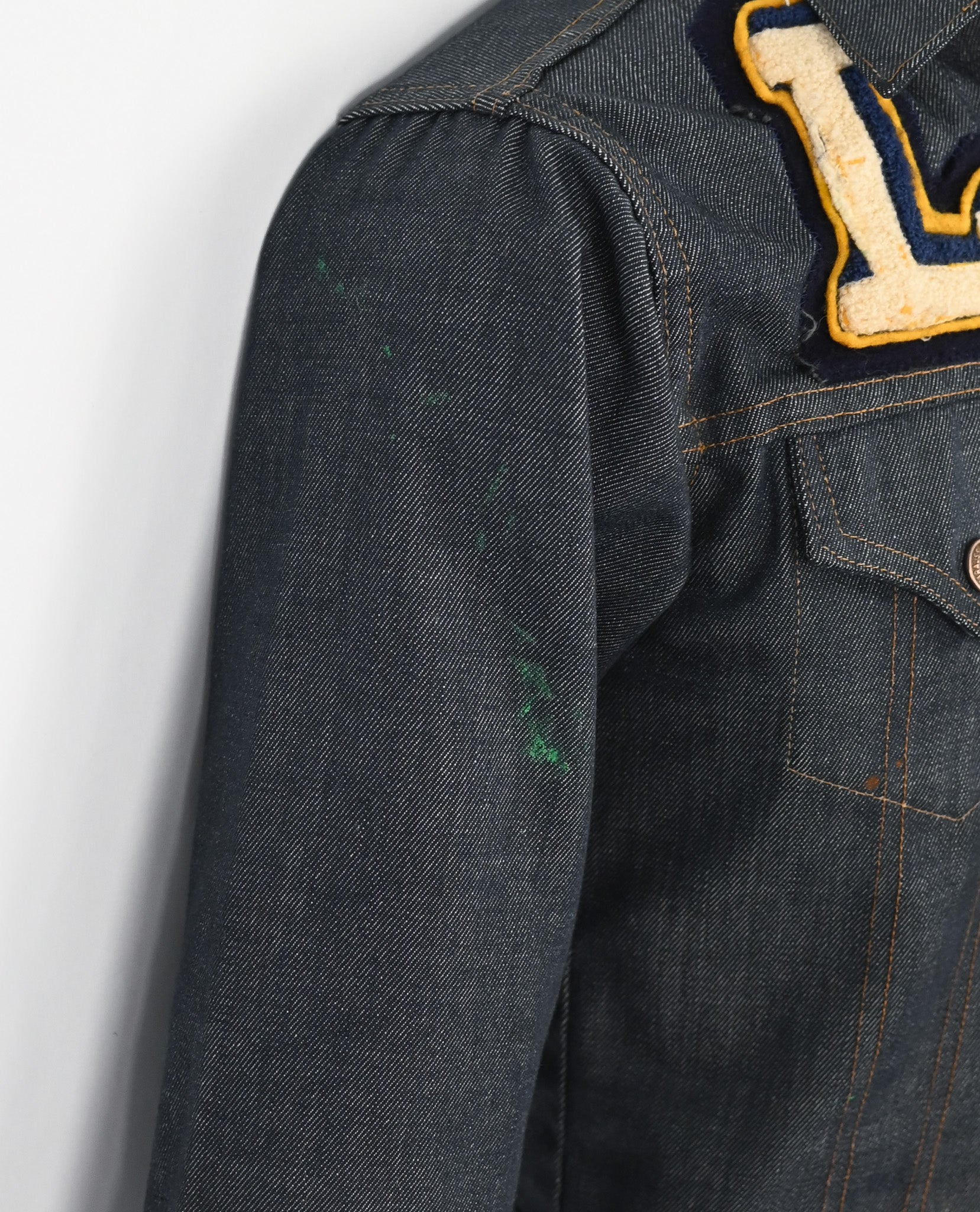 Vintage 70s Dark Wash LEVI'S Denim Snap Button Jacket w/ "L" and Chevron Patch