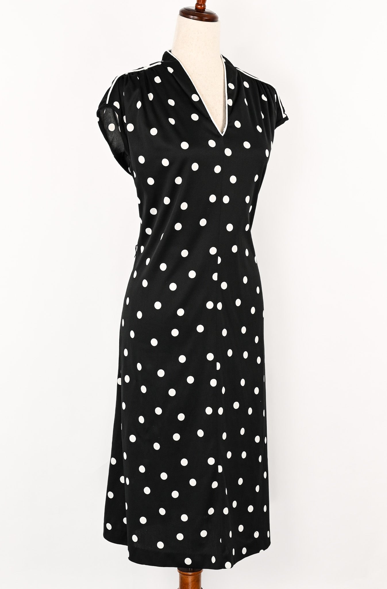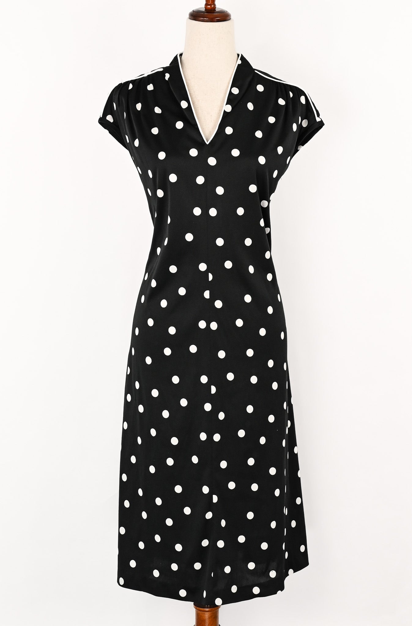 Vintage Black & White Polka-dot PRINCESS ORIGINALS Short Sleeve Shift Dress