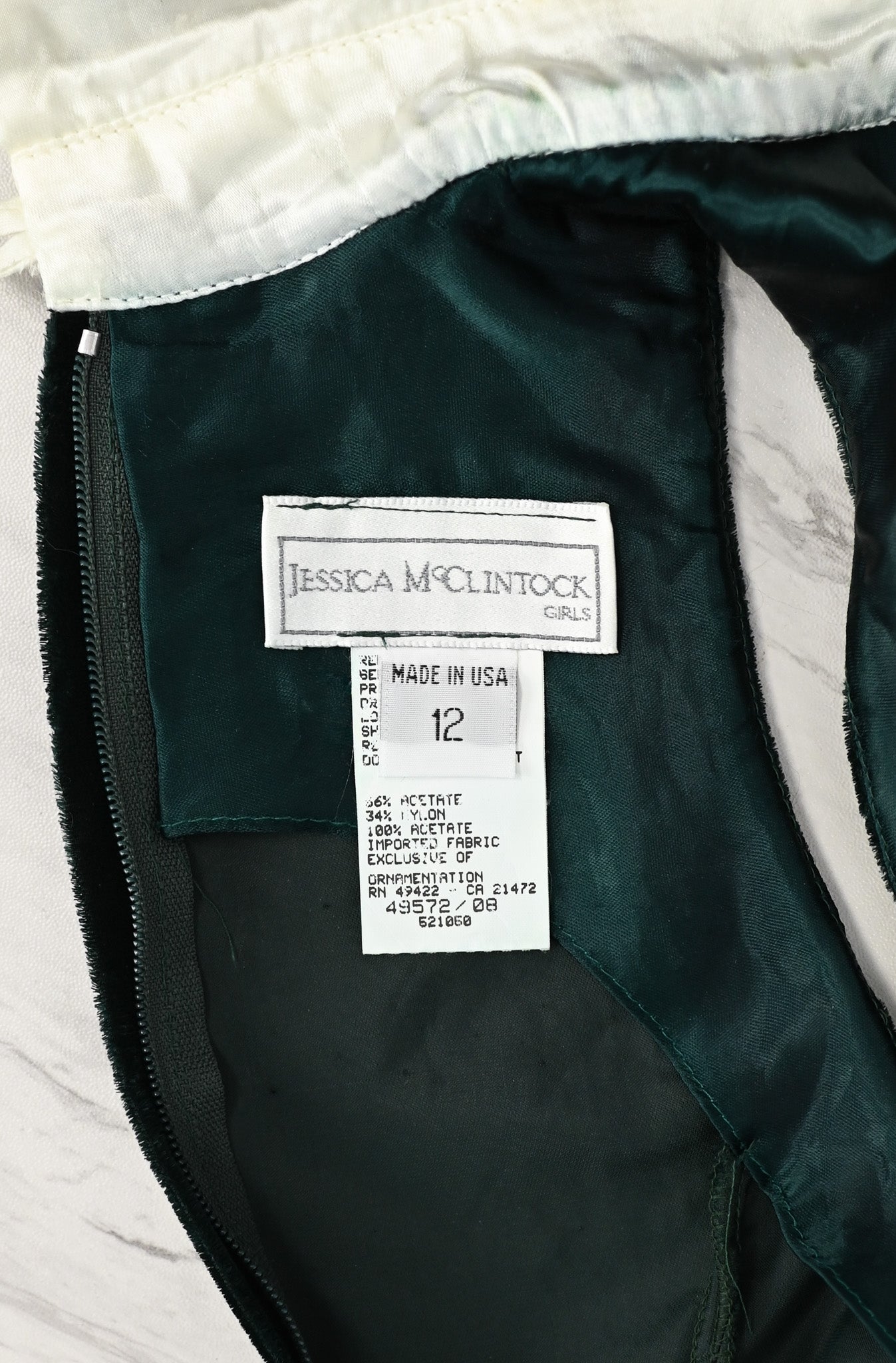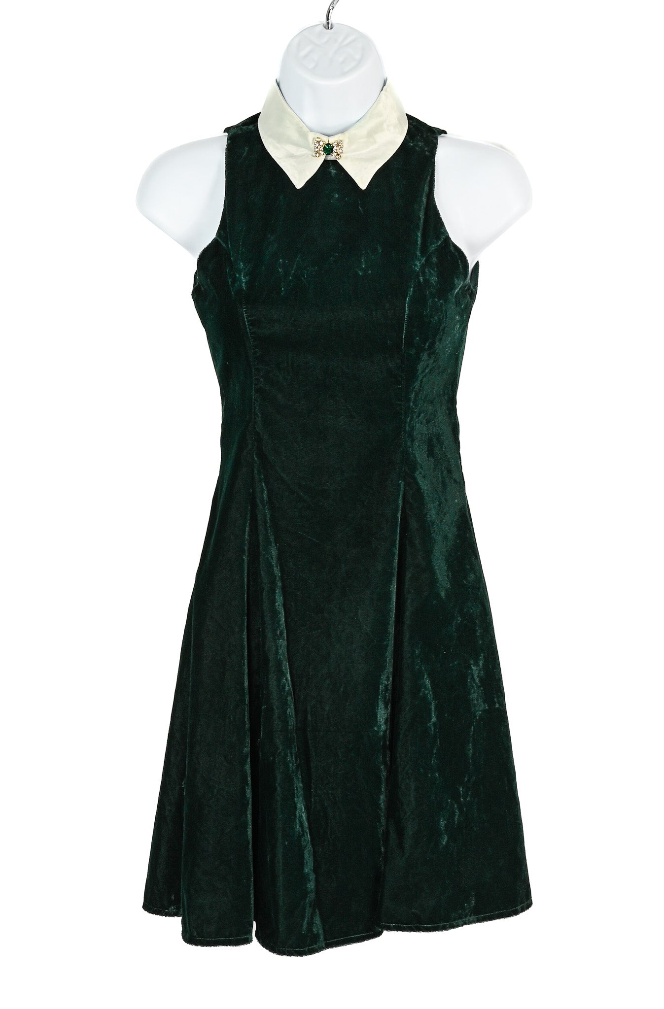 Vintage 90s Green Velvet JESSICA McCLINTOCK Collared Mini Dress - Elegance in everyway. A dress that can either fit a women's size XS or girl's size 12.