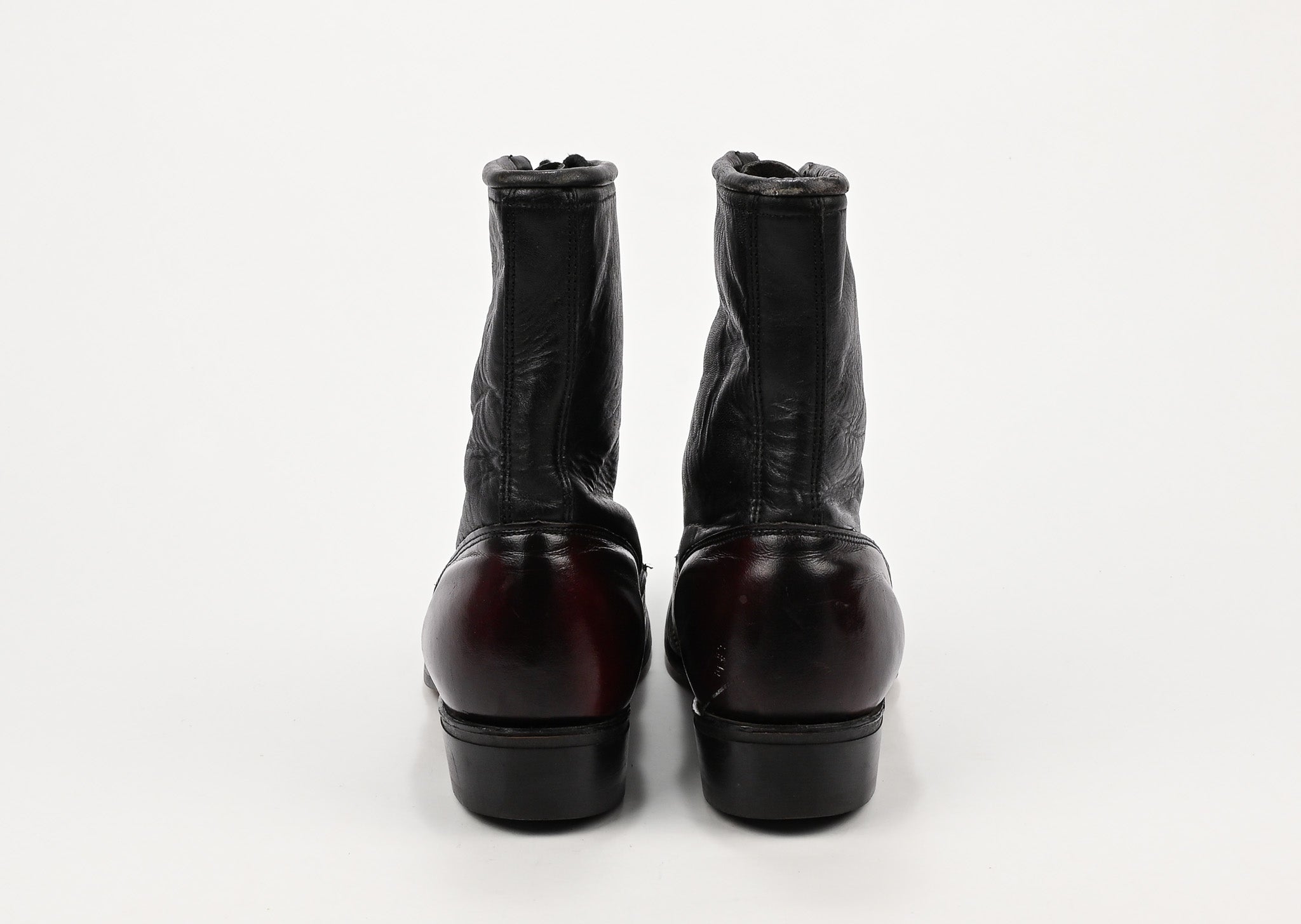 Vintage 80s/90s Black & Maroon Leather LAREDO Kiltie Lace Up Roper Boots - 6-1/2