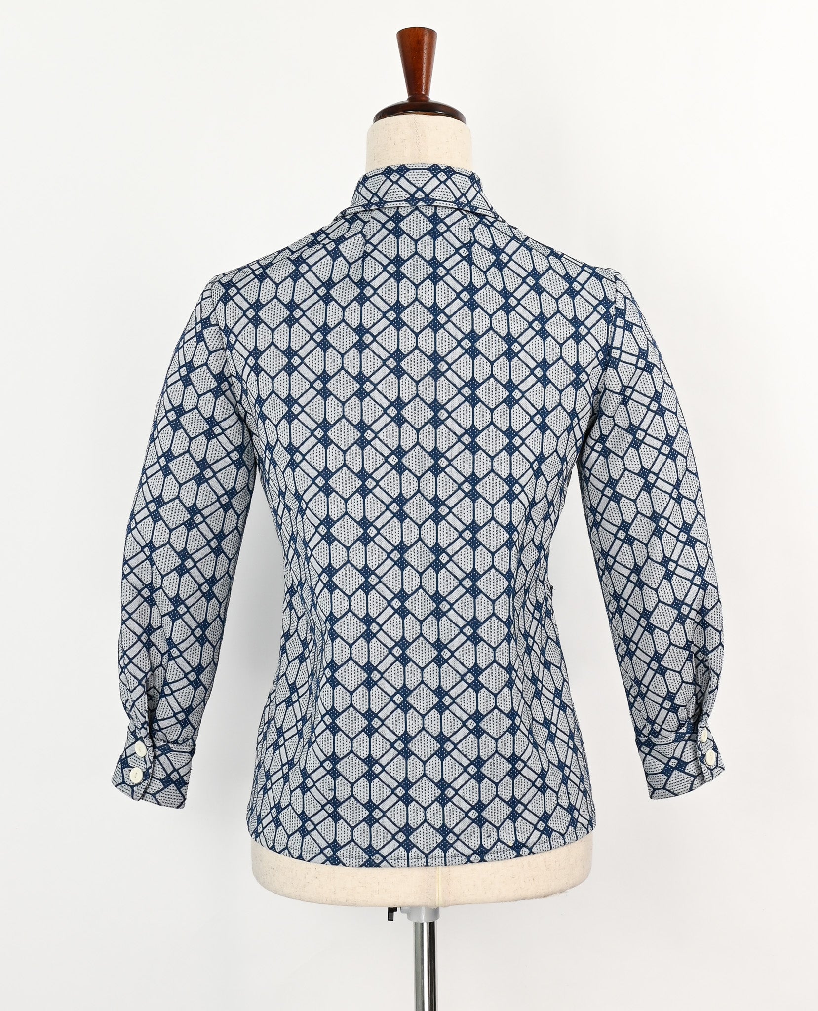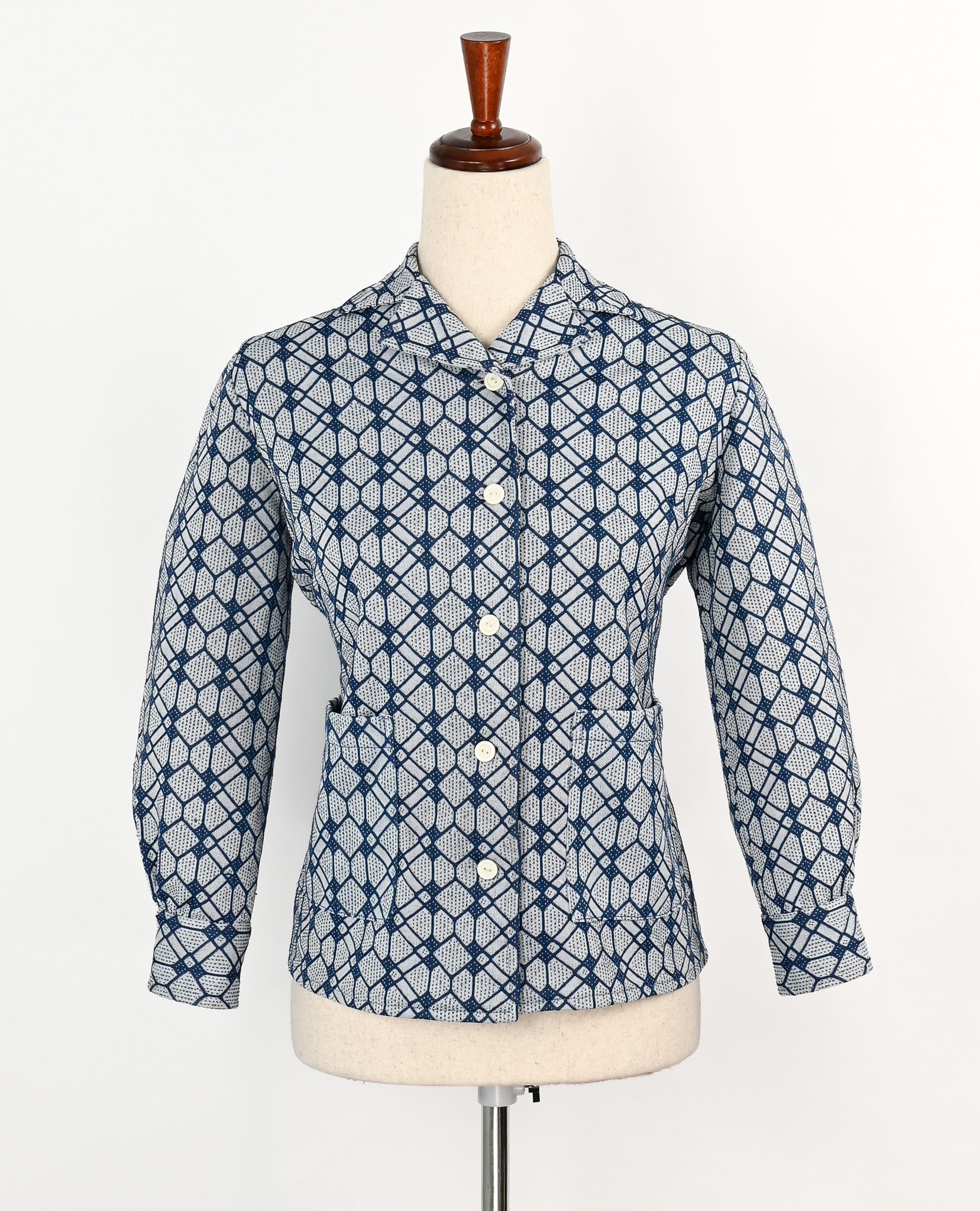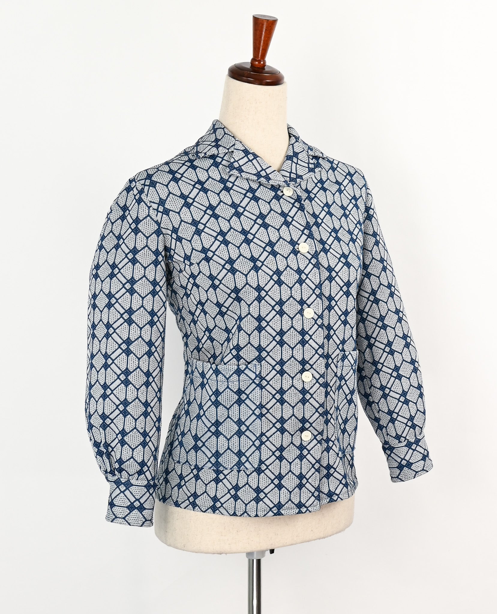 Vintage 60s Blue Geometric UNBRANDED Long Sleeve Shirt Jacket