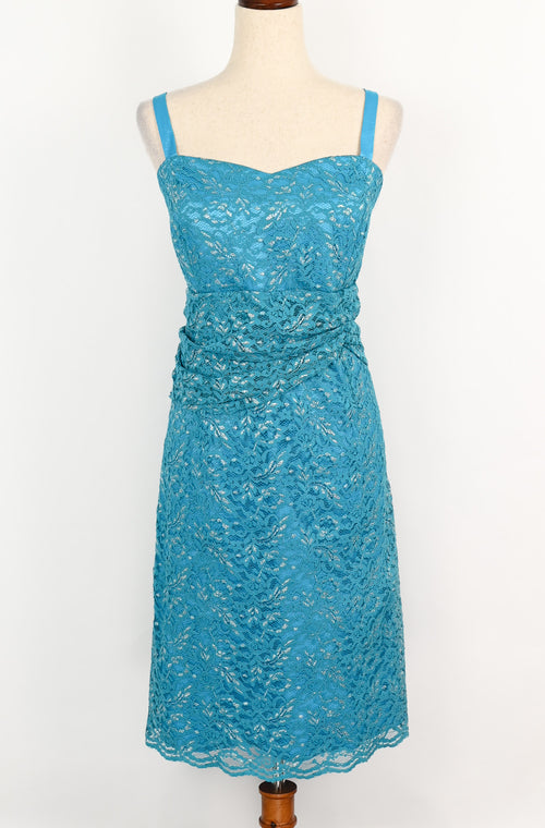 Vintage 90s Turquoise & Silver Lace Sleeveless Midi Dress - 2XL