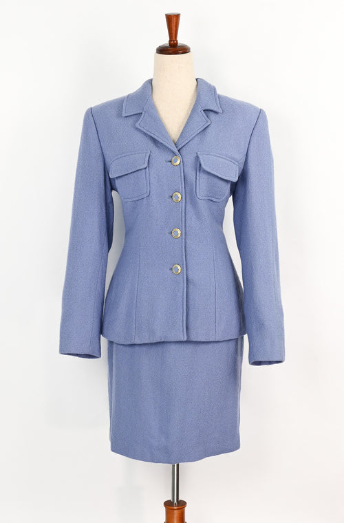 Vintage 80s/90s Periwinkle Wool GRUPPO AMERICANO Skirt Suit Set - 8