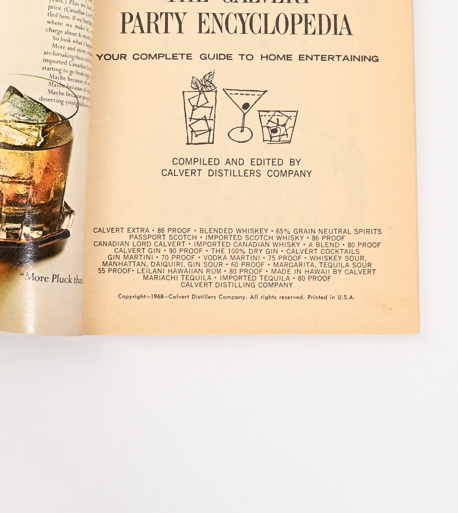This is a 1968 Edition of THE CALVERT PARTY ENCYCLOPEDIA: Your Complete Guide to Home Entertaining