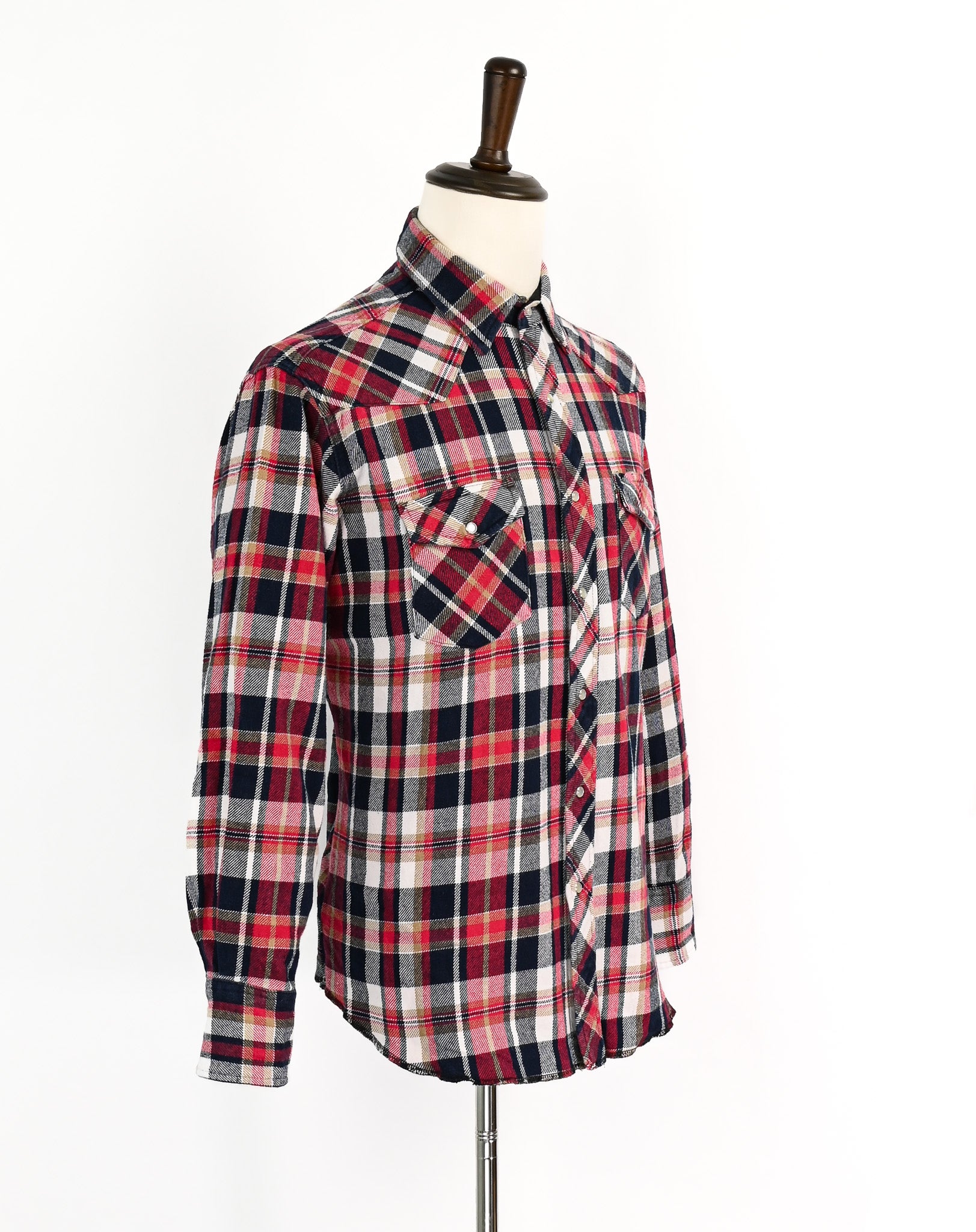 ラングラー レッド/ブラック/ブラウン プレイド フランネル スナップ ボタン ロング スリーブ シャツ- このシャツを着れば、どんなクマにも対応できます。