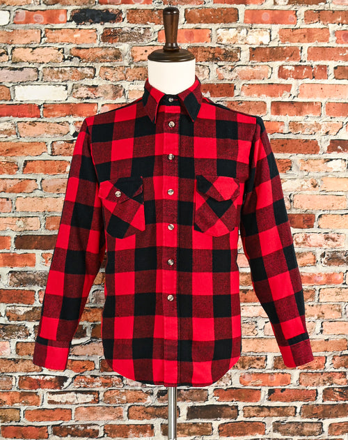 Vintage 90s Red & Black Checkered SEARS Perma-Prest Sportswear Flannel Shirt - M