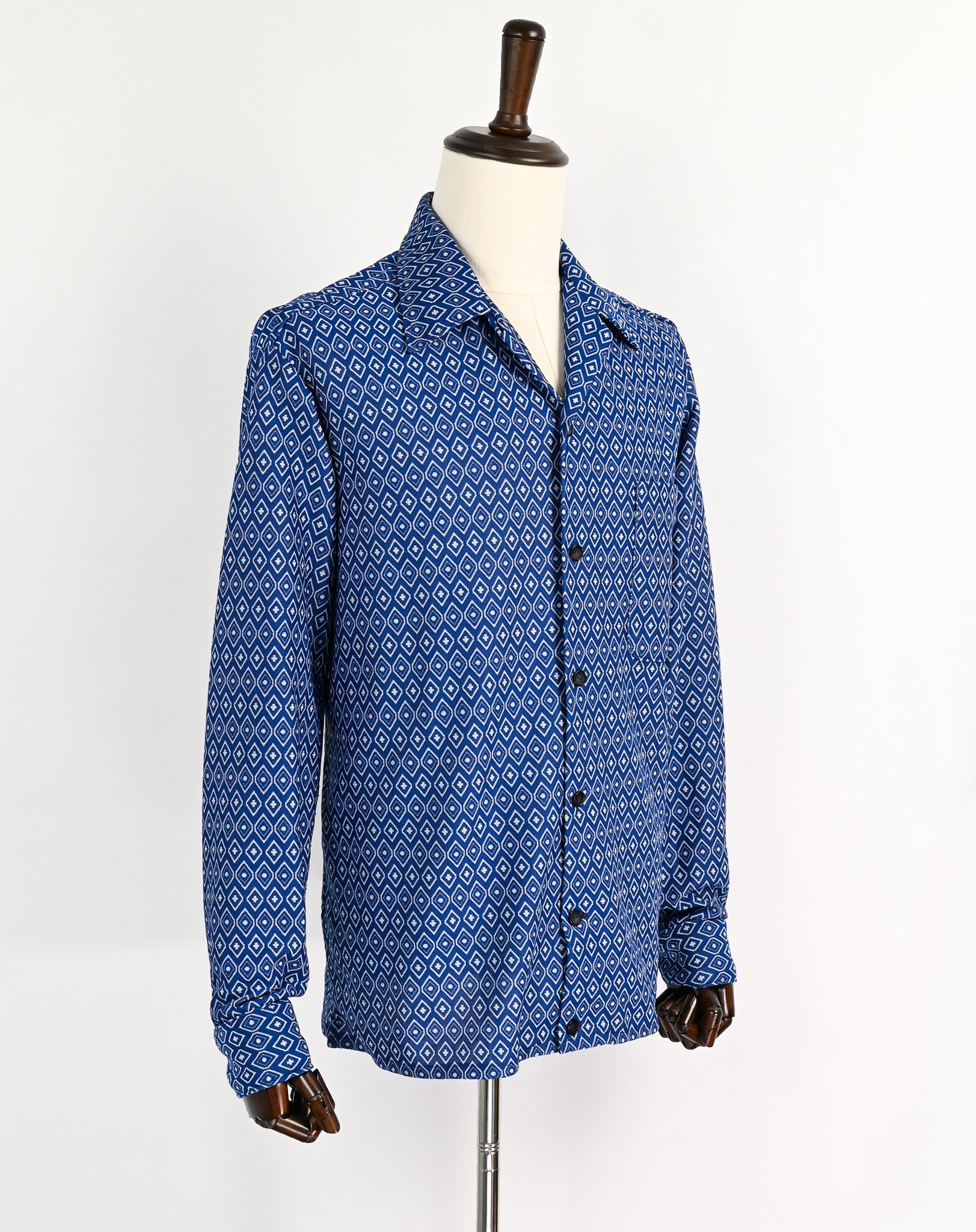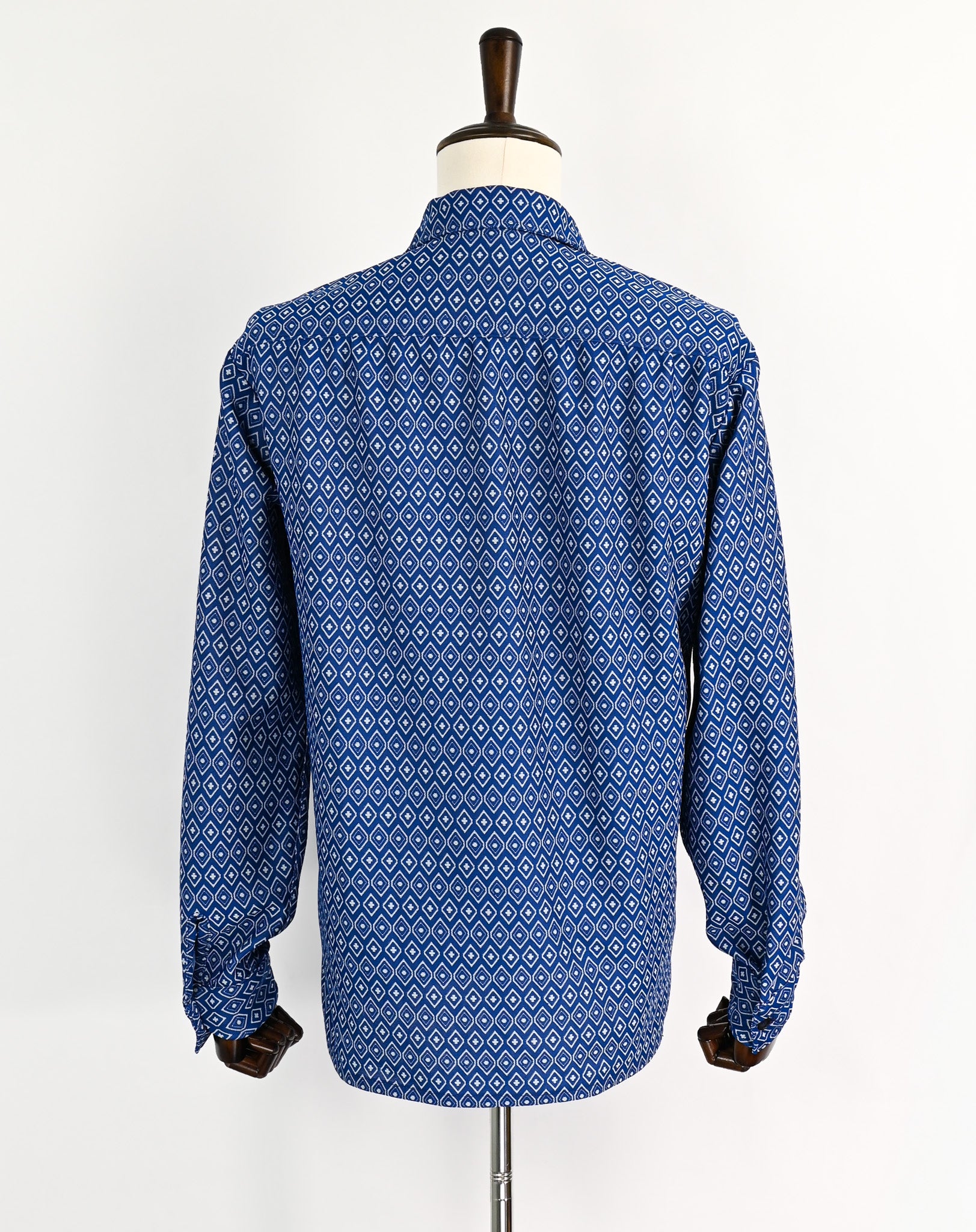 メンズ アンブランド ブルー ジオメトリック ロング スリーブ シャツ