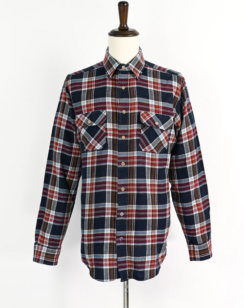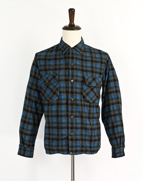 メンズ ヴィンテージ スポーツマン ウールネラ ブルー フランネル ロング スリーブ シャツ - M