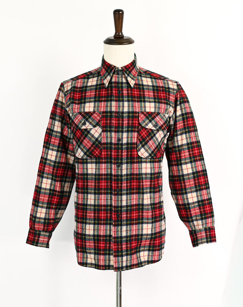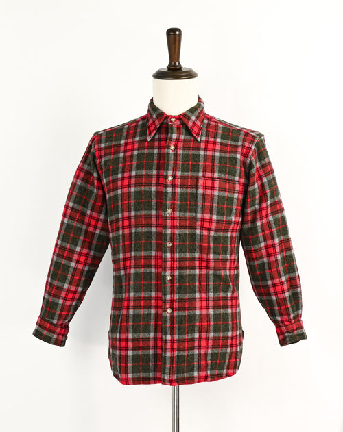 メンズ ヴィンテージ 70年代 ペンドルトン レッド グリーン タータン ウール ボタンアップ シャツ - M