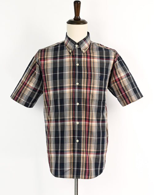 メンズ ヴィンテージ ラルフローレン チェック柄 ボタンダウン 半袖シャツ - L