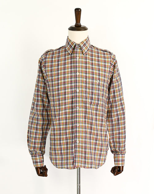 メンズ ヴィンテージ 70年代 リューマグラム チェック柄 長袖 ボタンアップ 肩章とフロントポケット付き