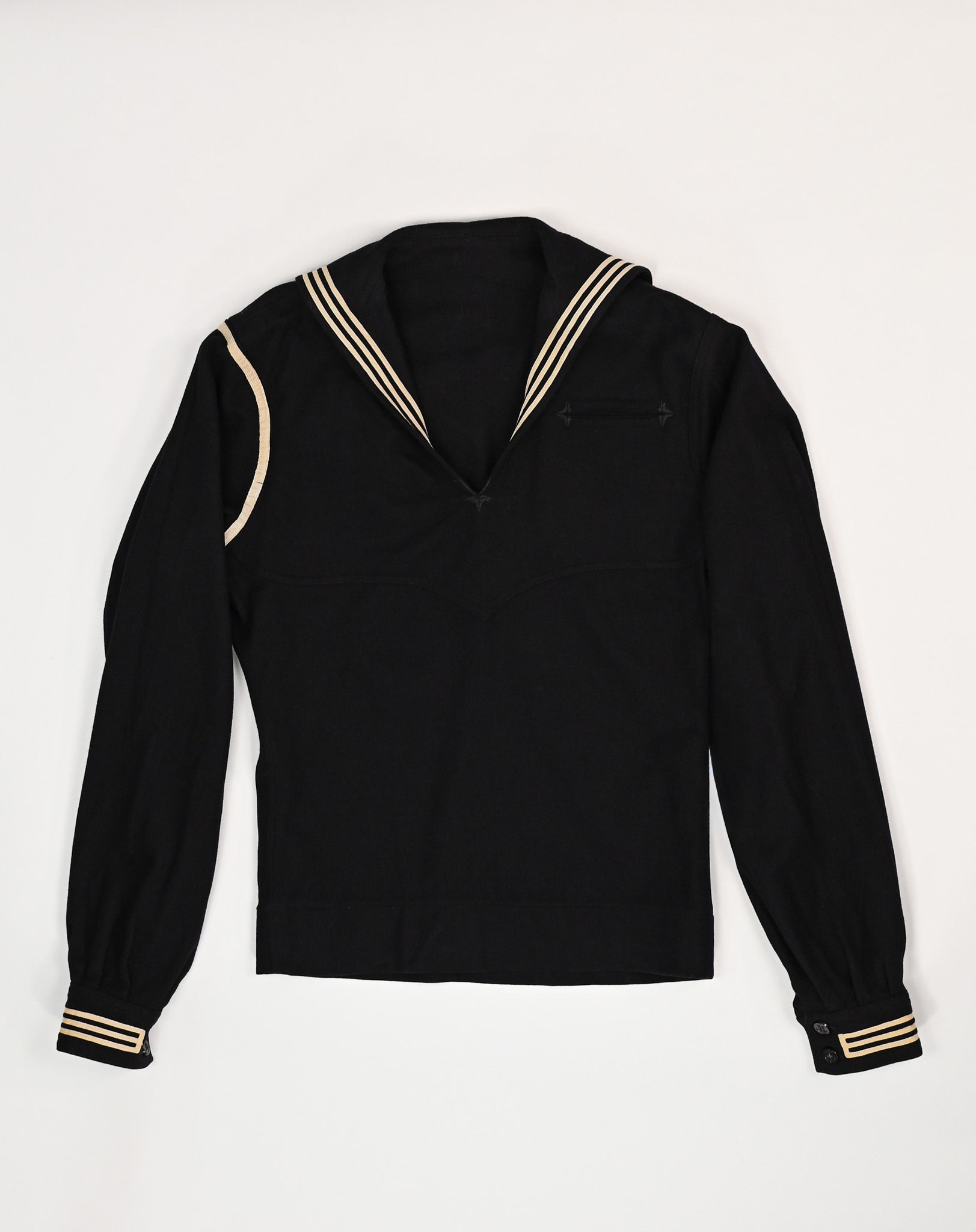 Vintage 30s/40s Black Wool NAVAL CLOTHING FACTORY U.S. Navy Sailor Cracker Jack Uniform Sweater