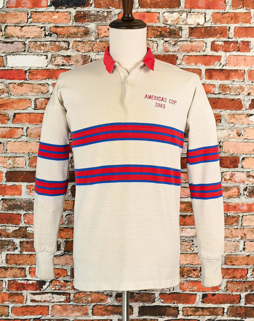Vintage 80s Striped 'TASMAN C' "Americas Cup 1983" Long Sleeve Rugby Polo - 46