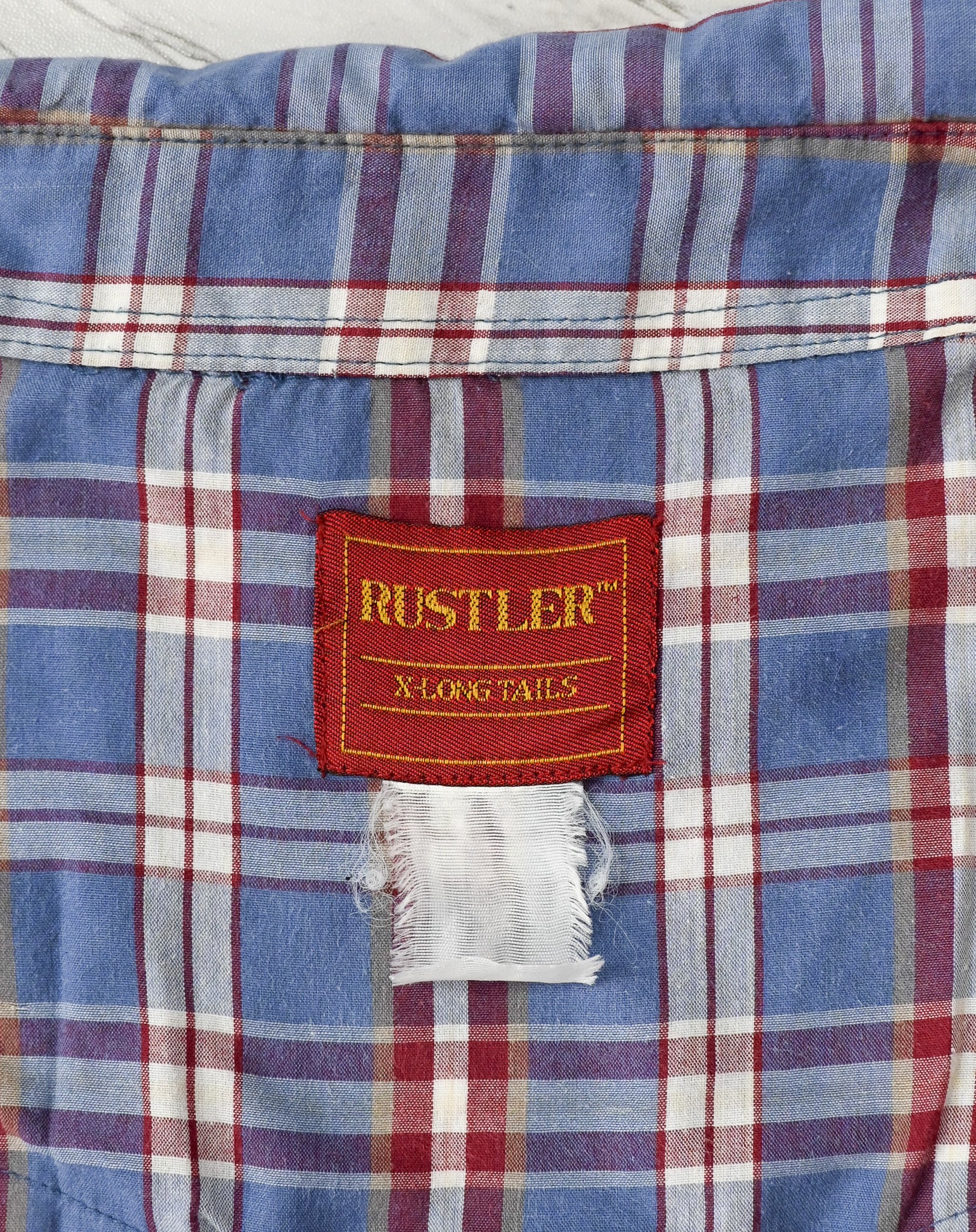 Rustler X-Long Tails ブルー/レッド プレイド パール スナップ ボタン ロング スリーブ ウエスタン シャツ- あらゆる機会に最適なシャツ。