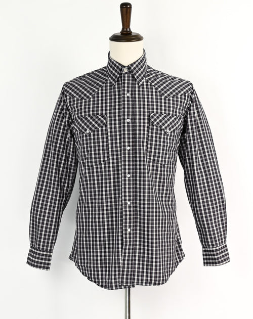 メンズ ヴィンテージ フライング R ランチウェア by Ruddock ブラック チェック柄 長袖 スナップ ボタン ウエスタン シャツ - M