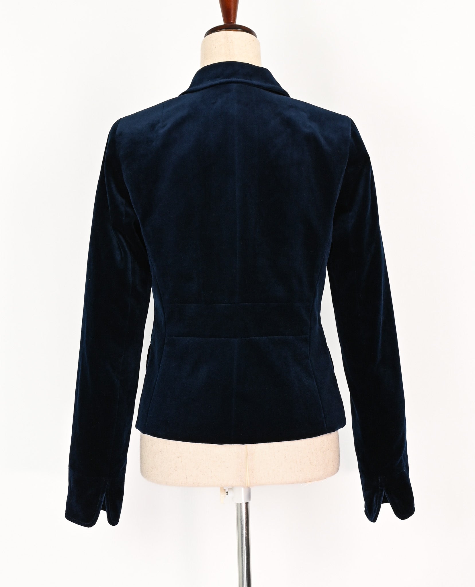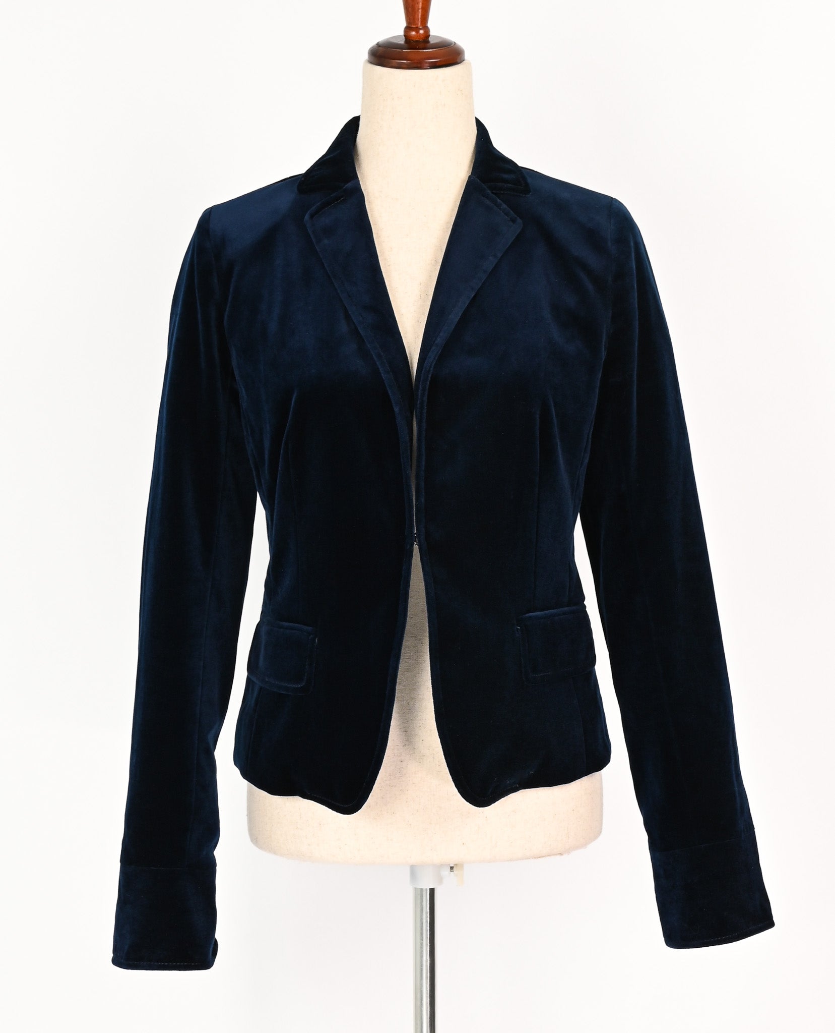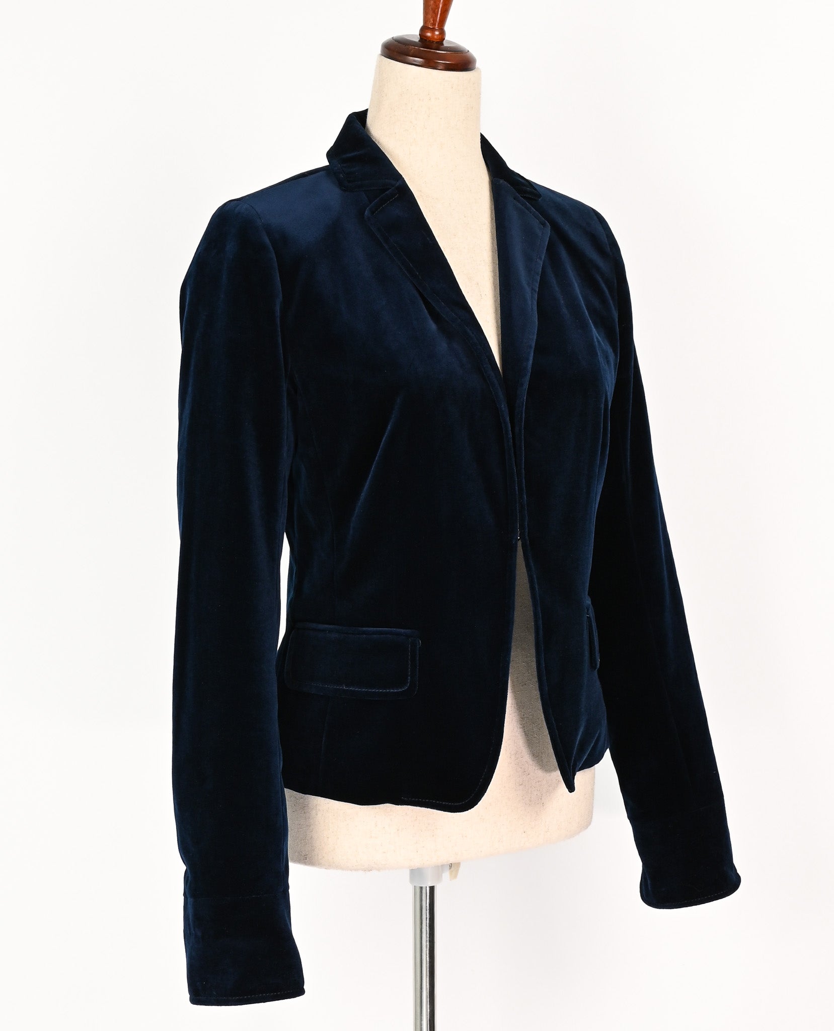 J.Crew ダーク ブルー ベルベット ブレザー ジャケット- このゴージャスなブレザーで、キャリアウーマンの内なる夢を叶えましょう。