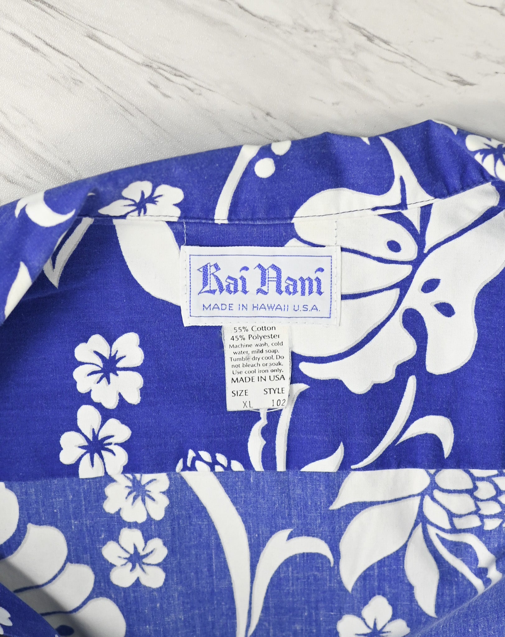 Vintage 70s Blue & White Floral KAI NANI Hawaiian Shirt - XL